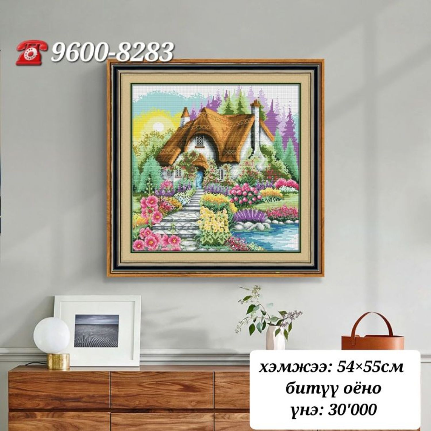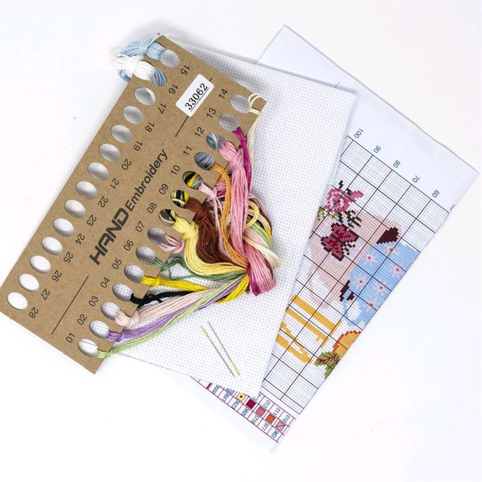 зүү: 2ш уут нь дотроо зурагтай хэрээсэн хатгамал даавуу, хатгамал утас, зүү болон тайлбартай Битүү оёно